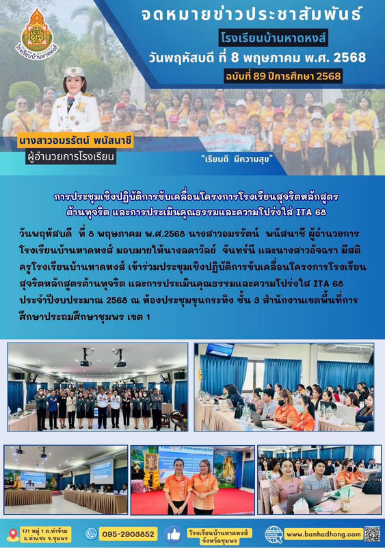 ประชุมเชิงปฏิบัติการขับเคลื่อนโครงการโรงเรียนสุจริตหลักสูตรต้านทุจริต และการประเมินคุณธรรมและความโปร่งใส ITA 68 ประจำปีงบประมาณ 2568