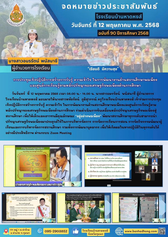 วันจันทร์ ที่ 12 พฤษภาคม 2568 เวลา 08.00 น.- 14.00 น. นางสาวอมรรัตน์ พนัสนาชี ผู้อำนวยการโรงเรียนบ้านหาดหงส์ มอบมายให้นางสาวหทัยรัตน์ ภูมิสุวรรณ์ ครูโรงเรียนบ้านหาดหงส์ เข้าร่วมการประชุมเชิงปฏิบัติการสร้างการรับรู้ ความเข้าใจ ในการพัฒนางานด้านสถานศึกษาพอเพียงและศูนย์การเรียนรู้ตามหลักปรัชญาของเศรษฐกิจพอเพียงด้านการศึกษา  |